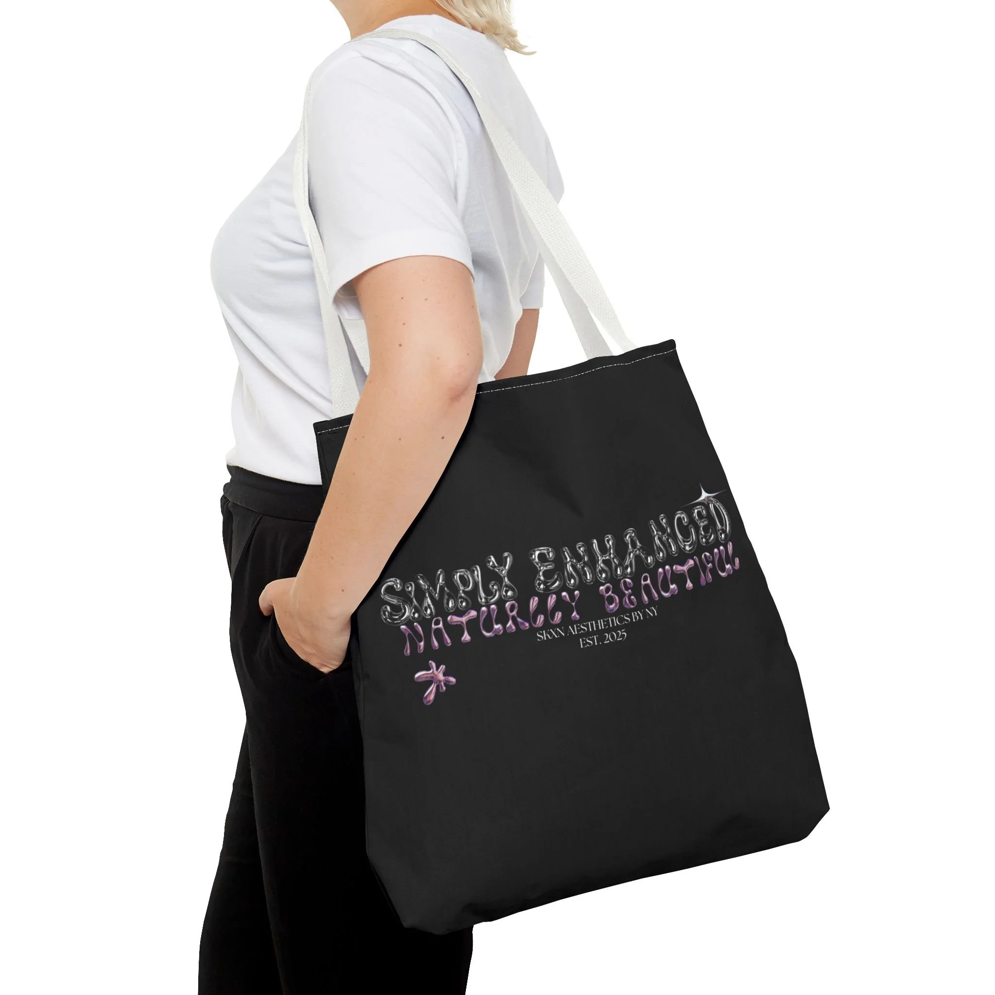 Introducing our stylish Tote Bag, designed to bring a touch of flair to your everyday life. This eye-catching bag combines functionality with a modern aesthetic, making it the perfect accessory for anyone on the go. Whether you’re heading to the farmers market, a casual outing, or gearing up for a beach day, this tote fits seamlessly into your lifestyle. It's a great gift for environmentally conscious friends, students, or busy professionals looking for a chic way to carry their essentials. Ideal for holidays like Earth Day, back-to-school season, or as a thoughtful gift for birthdays and celebrations. Embrace practicality without sacrificing style! Product features - 100% Polyester body for strength and durability - Seamless thread color for a polished look - Reinforced stitching on handles for added longevity - Boxed corners provide extra space for storage - Available in three sizes with five color handle options Care instructions - Remove all items from the bag before cleaning. Suggested to pretreat visible stains with stain remover. Mix warm water with laundry detergent and clean the bag with terry washcloth or a soft bristle brush. Let the bag air dry.